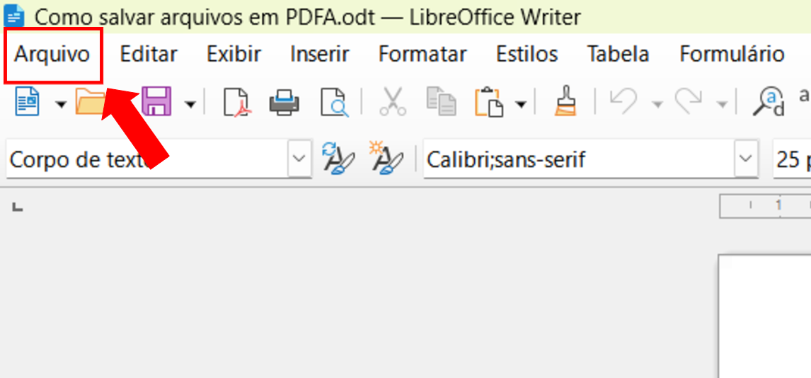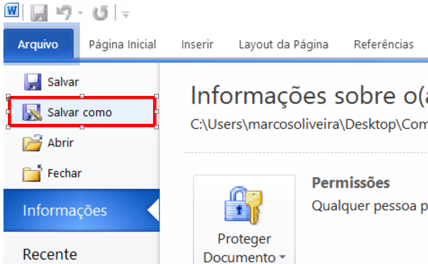 Observações: Para esta orientação foi utilizado o Microsoft Word 2010. Você pode salvar documentos em PDF/A pelo World à partir da versão 2007.