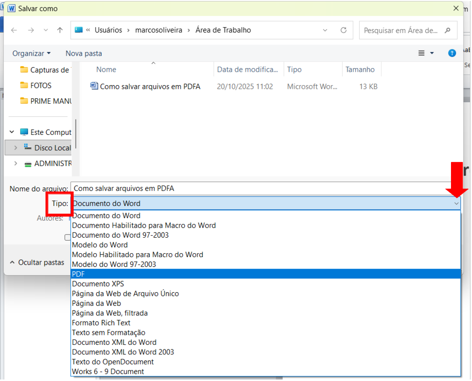 Como salvar documentos em PDF/A?