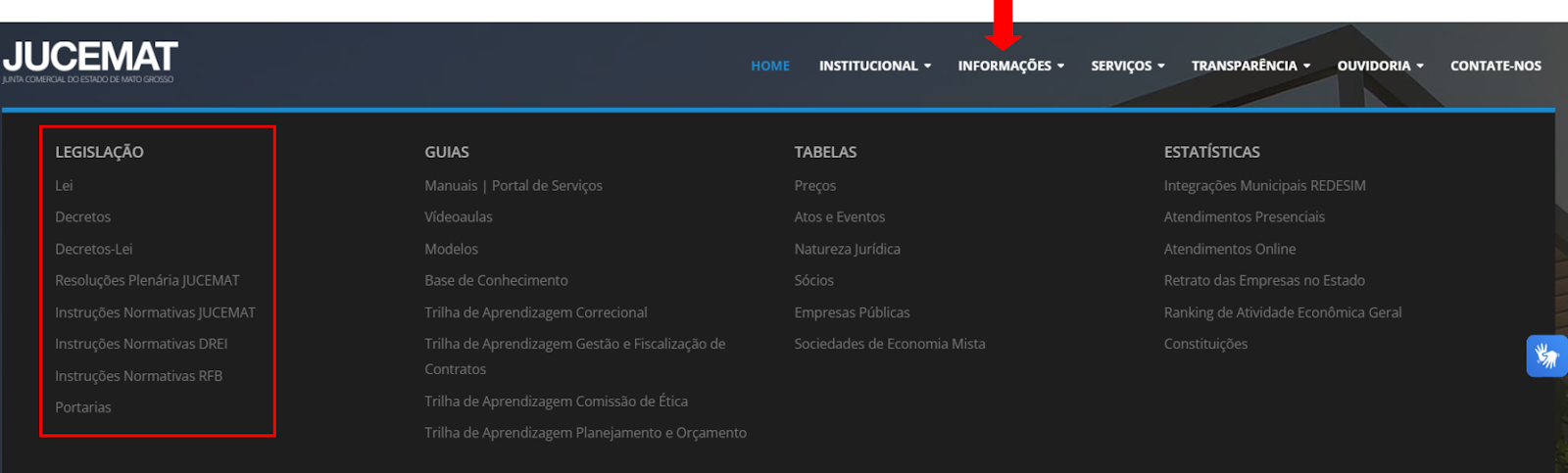 Vá ao menu de INFORMAÇÕES, em LEGISLAÇÃO, e clique no tipo de norma que procura.